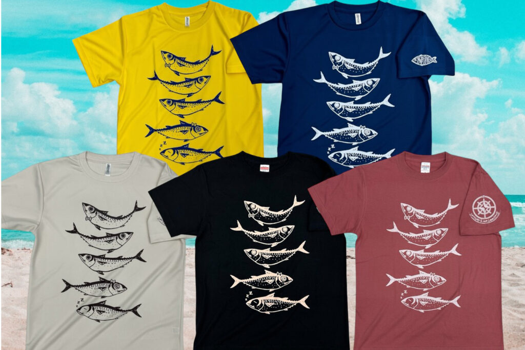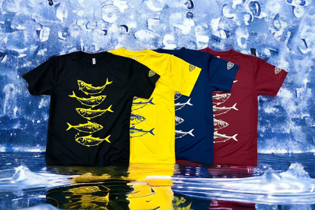 Tシャツの胸には必ず清水さばを5匹で背中のデザインと左袖のデザインを毎年変更して